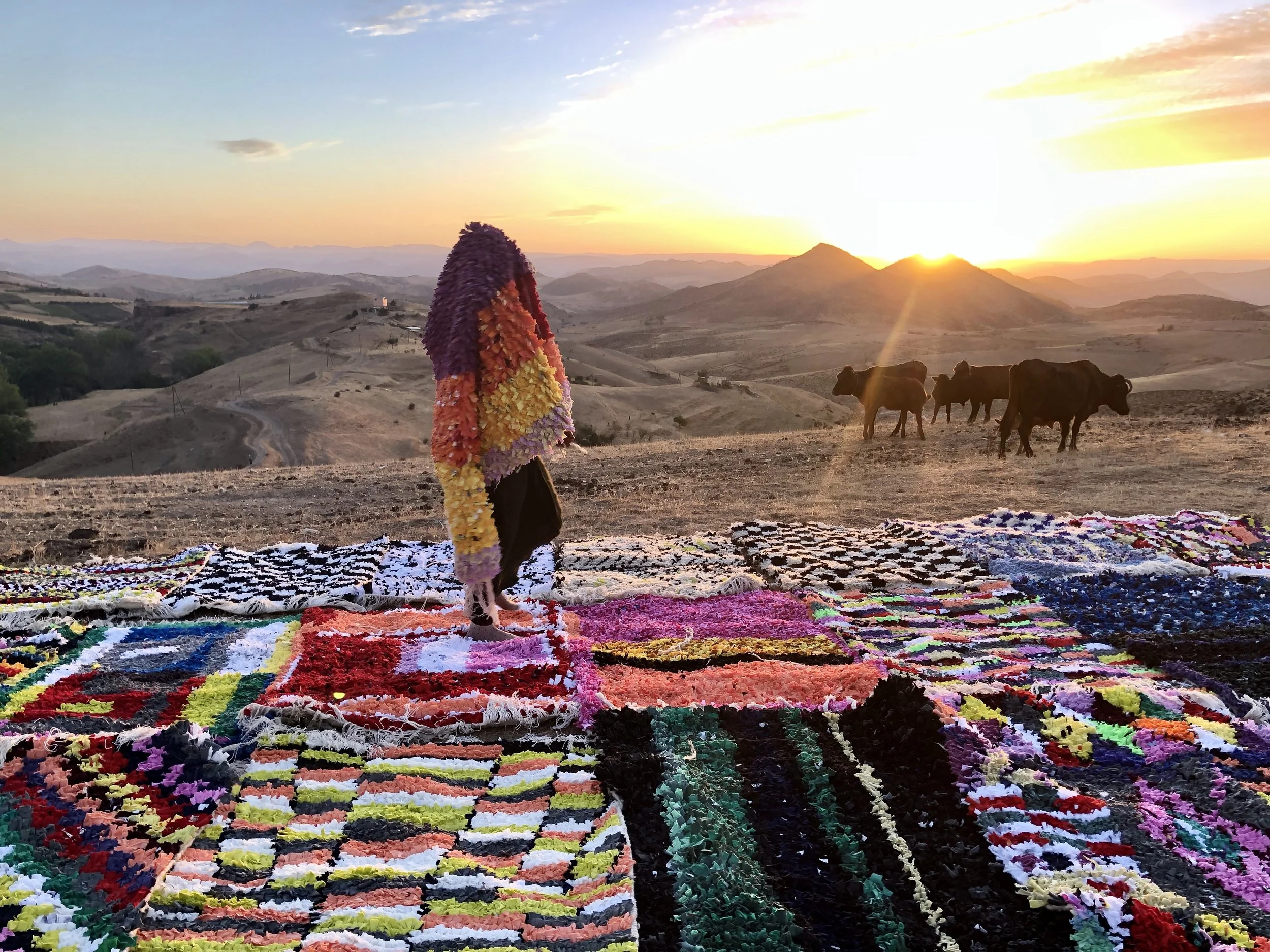 In collaboration with our community of weavers in Ain Leuh, Artisan Project designed and art directed a collection of 30 vibrant, abstract, Boucherouite carpets from Stussy’s deadstock t-shirts.